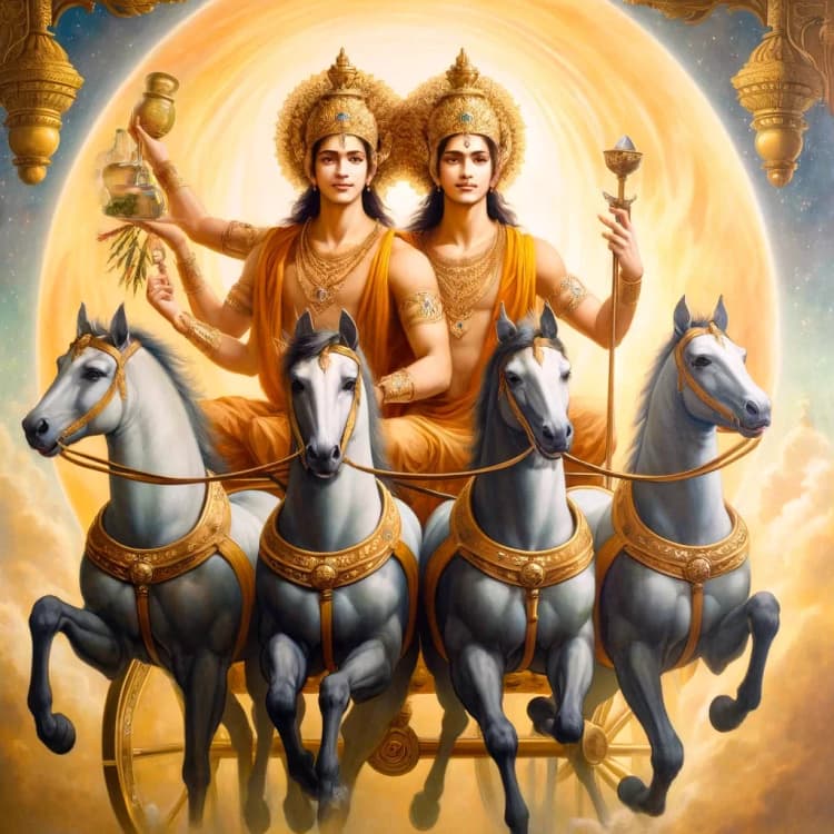 In this article, we explore the origins of the Aśvini Nakshatra and the Aśvinī Kumāras, unveiling the intricate narrative of Vedic mythology about the heavenly twins born of the Sun God Sūrya and his consort Sanjña. From their birth to their roles as bringers of healing and protection, we delve into the symbolic significance of these deities within the eternal cycle of existence. We navigate through the realms of light and shadow, exploring the themes of renewal and the indomitable spirit of life that the Aśvinī Kumāras embody